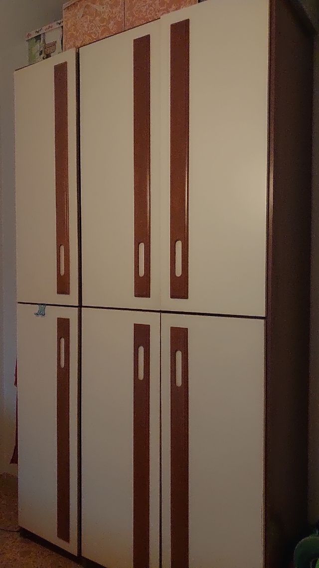Dettagli del prodottovendo armadio di legno molto solido a tre ante (no compensato), beige e marrone, in ottime condizioni, già smontato. Misure h273 cm, largh 150 cm, profondità 60 cm.