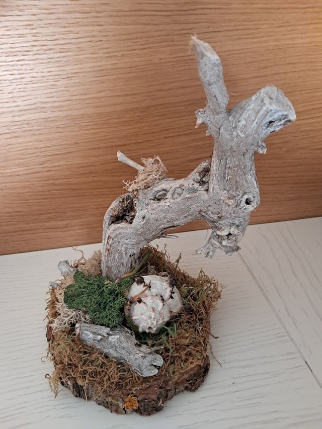 Arredo vegetale decorato con conchiglia e muschi. Ideale per l'aggiunta di nuove specie botaniche a ridotta esigenza idrica.