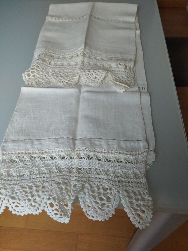 Asciugamani antichi risalenti agli anni '40 alcuni tessuti e ricamati a mano, altri in fiandra. Vari modelli.