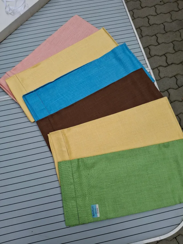 Dettagli del prodottoSet di asciugamani in lino, disponibili in diverse tonalità vivaci.