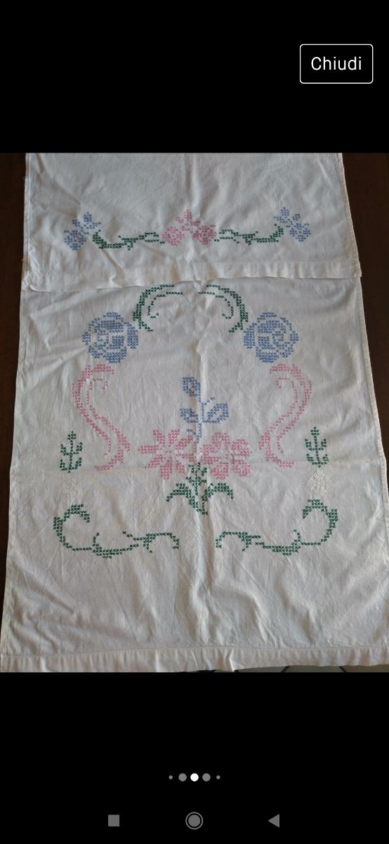 asciugamano in cotone completamente ricamato a punto croce punto misura cm 120*55. articolo vintage senza imperfezioni.