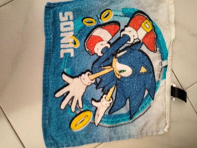 Asciugamano con il personaggio di Sonic, ideale per i più piccoli. Il design è colorato e vivace. - Personaggio: Sonic - Colore: Blu