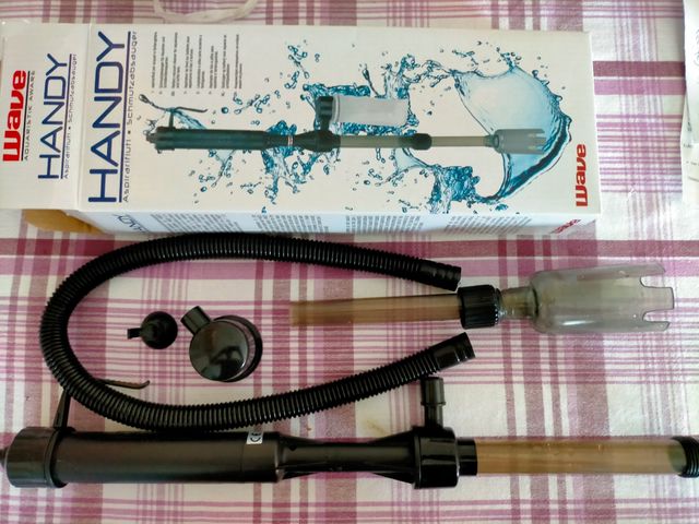 funziona con 2 pile, utile x pulire il fondo e la sabbia dell'acquario