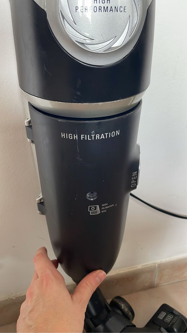 Dettagli del prodottoAspirapolvere Rowenta con sacchetto, ideale per la pulizia della casa.