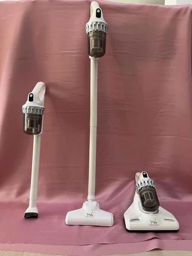 Dettagli del prodottoAspirapolvere senza fili di colore bianco, ideale per la pulizia della casa.