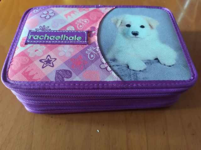 Astuccio a 3 scomparti Rachael Hale Cane per materiale scolastico.