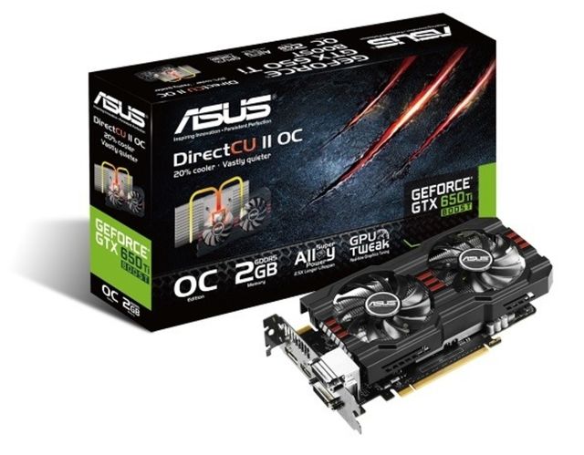 Dettagli del prodottoASUS GeForce GTX 650 Ti Boost DirectCU II caratterizzata da frequenze già overcloccate di fabbrica a 1085 MHz e 1GB di memoria GDDR5 con interfaccia a 192 bit. La scheda prevede un dissipatore a doppia ventola (da 80 mm) e un design a doppio slot