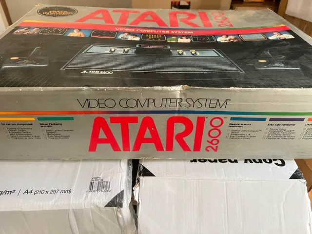 Dettagli del prodottoL'Atari 2600 (pubblicizzata nei primi anni di commercializzazione come Atari VCS, sigla di Video Computer System) è una console per videogiochi prodotta da Atari e venduta a partire da agosto 1977 fino al 1992. È stata tra le prime console a utilizzare le cartucce come metodo di distribuzione dei giochi ed è anche ricordata come la prima console di successo: ne sono stati infatti venduti circa 30 milioni di esemplari, una delle console più longeve di tutti i tempi.[3] Furono realizzati per la console più di 550 giochi[4] e vennero vendute più di 120 milioni di cartucce, con prezzi che oscillavano fra i 12 e i 35 dollari.
