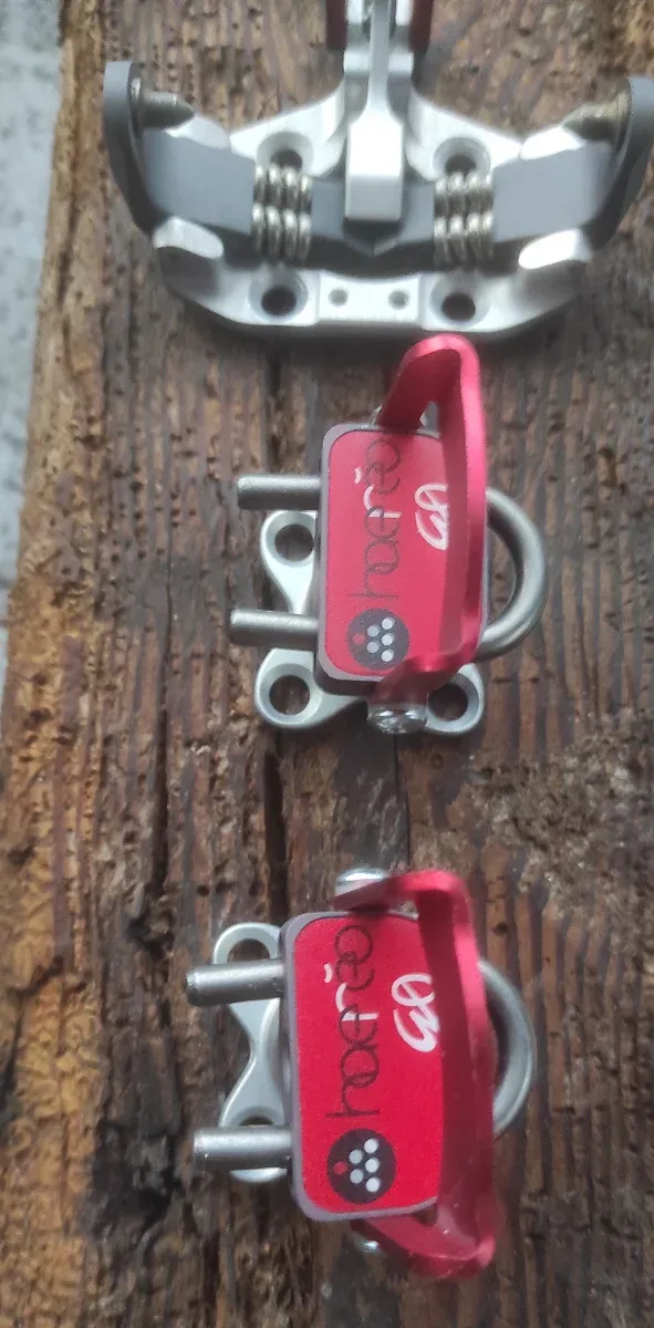 Coppia di attacchi per scialpinismo. Com viti e fissaggi per rampant. Nuovi.