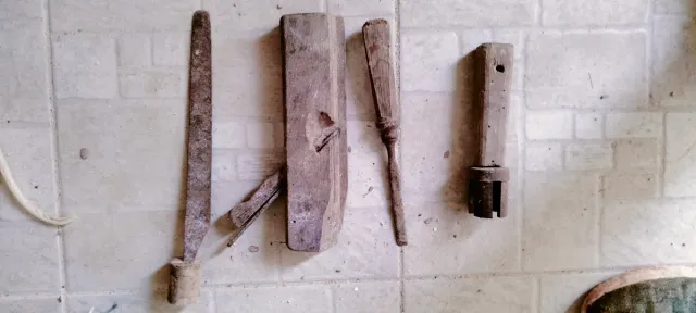 Attrezzi agricoli vintage in legno