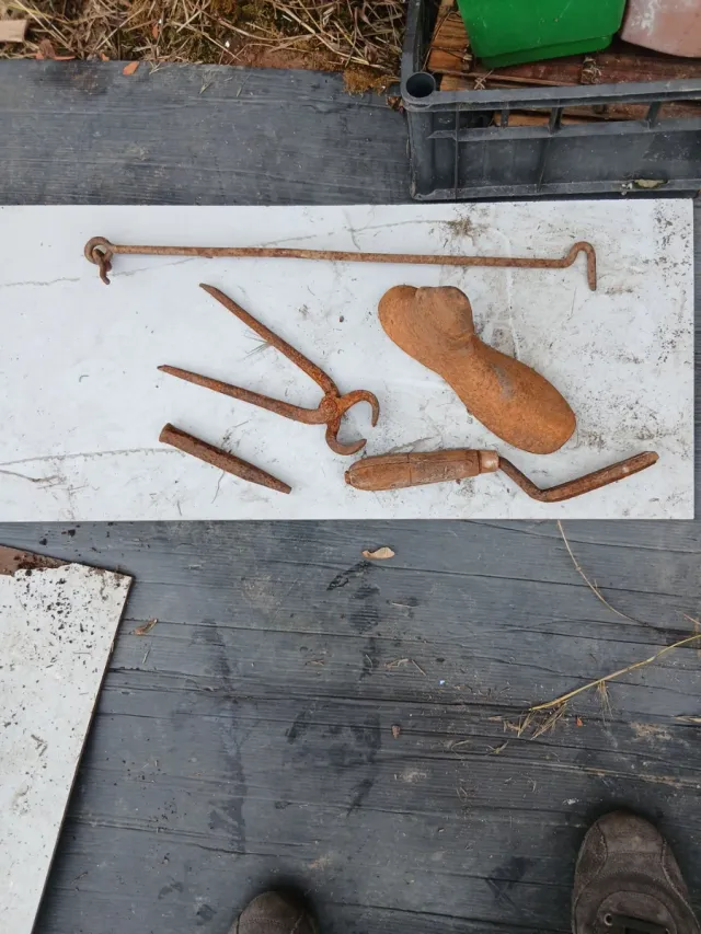 Dettagli del prodottoLotto di attrezzi antichi in ferro, ideali per collezionisti o per chi ama il fai-da-te con strumenti d'epoca.