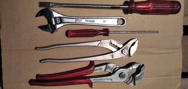 2 pinze a coccodrillo 1 chiave 8" a vite continua 1 cacciavite a stella 1 cacciavite taglio modello 7 lungo