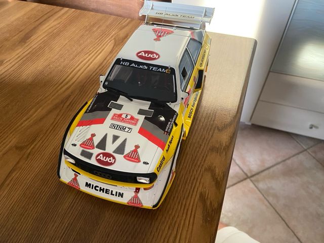 Modellino Audi Quattro S1. - Scala 1:18. - Dettagli fedeli alla versione da rally. - Sponsor originali come Michelin e Audi Sport.
