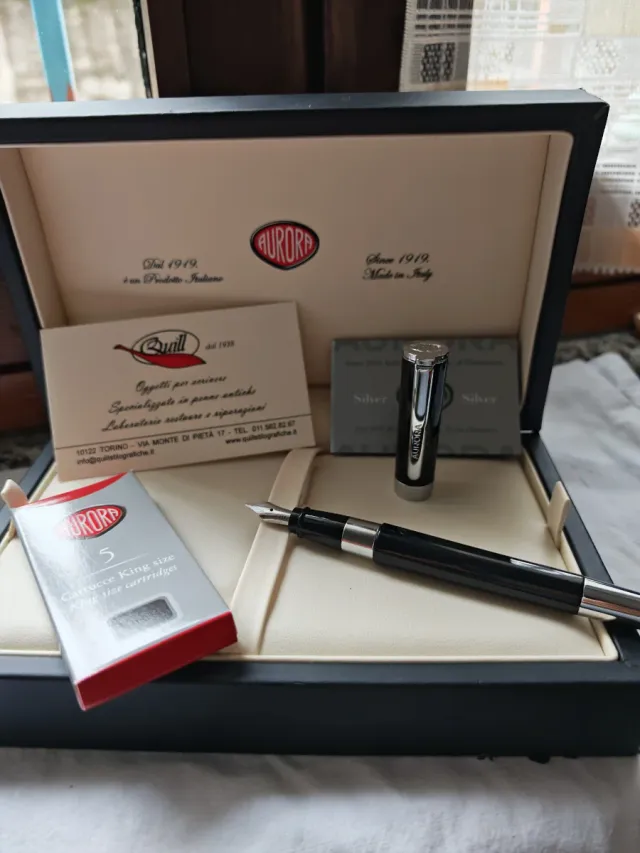 Splendida stilografica Aurora, Mai usata. Con cartucce incluse. Modello come da foto. Anno 2016. Imballo originale. Prezzo di listino 110 euro