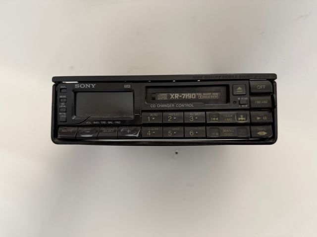 Dettagli del prodottoAutoradio Sony modello 7190 con funzione cassetta Dolby B e C, Loudness, 4 uscite amplificate (4x9W o 27 x 2W), uscita pre e caricatore CD permette di controllare il CD Changer. Altre specifiche si trovano in rete. Top di gamma Sony degli anni fine 80 inizio 90. Ideale per auto anni 80/90 o per collezionisti. Da notare leggera spaccatura della plastica vicino al display. Viene venduta come non funzionante per mancanza di cavi e con la formula "visto e piaciuto" escludendo in questo modo ogni forma di garanzia o reso futura.