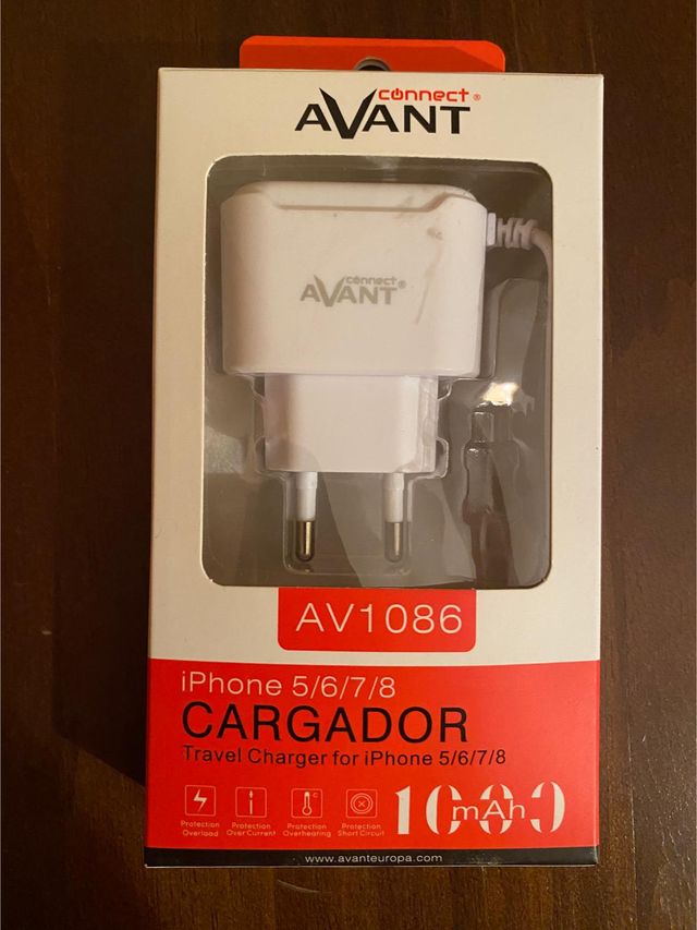 Dettagli del prodottoCaricatore da viaggio Avant modello AV1086. Progettato per iPhone 5/6/7/8. Include protezioni contro sovraccarico, sovracorrente, surriscaldamento e cortocircuito. Capacità di 1000 mAh. La descrizione è stata tradotta automaticamente.