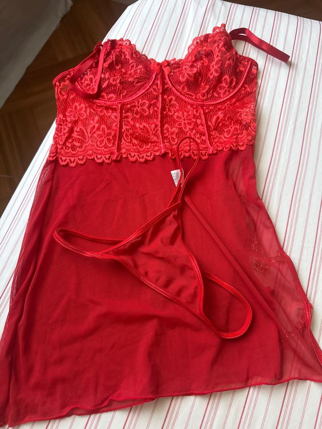 Babydoll rosso in pizzo