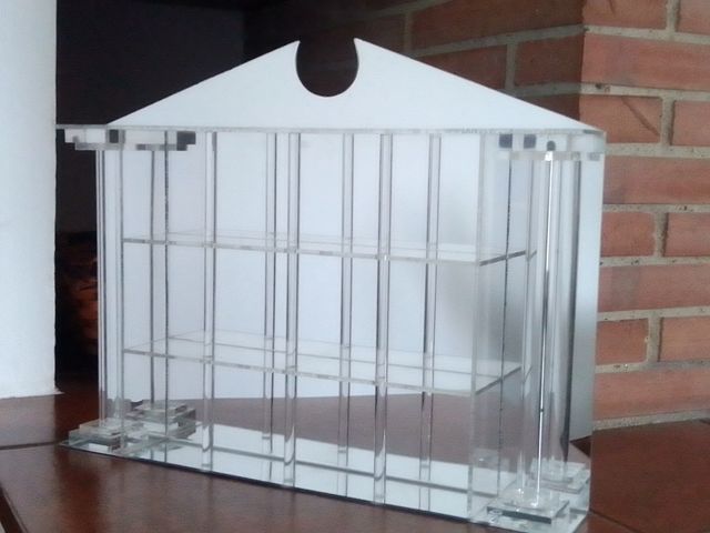 Dettagli del prodottoBacheca di 3 ripiani, con fondo a specchio, aperta davanti, specifica per mettere in risalto la luce dei cristalli, in plexiglass. Misure 30x38,5x5