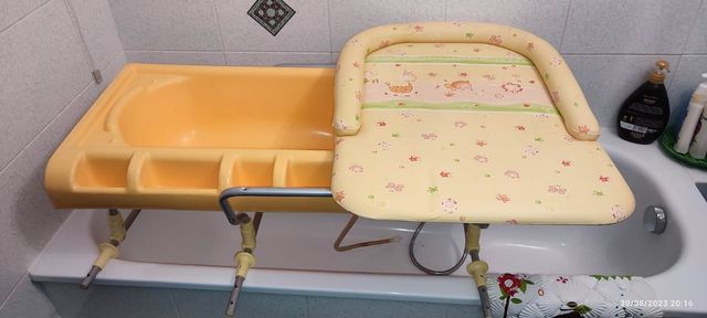 Dettagli del prodottoVendo bagnetto marca BREVI neonato con fasciatoio. Si adatta alla vasca da bagno o ad altro piano di appoggio.