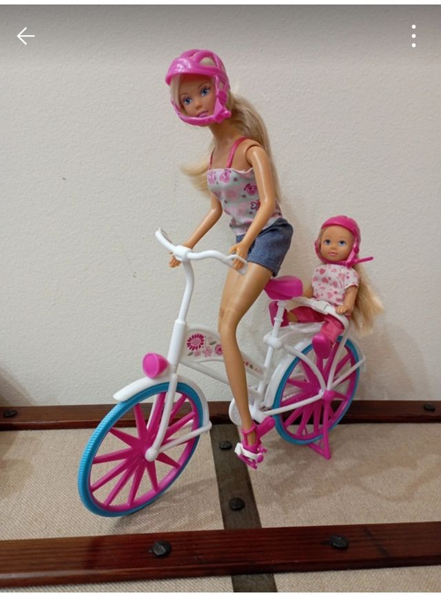 Lolly e la sua graziosa bici, con i capelli al vento si spingerà in divertenti scampagnate.. vestita con una canotta a fiori ed un paio di pantaloncini di jeans è pronta per affrontare una fantastica gita in bicicletta, senza dimenticare di mettere il caschetto. Grazie al cinturino dietro Lolly può caricare con sé la sua bambina.