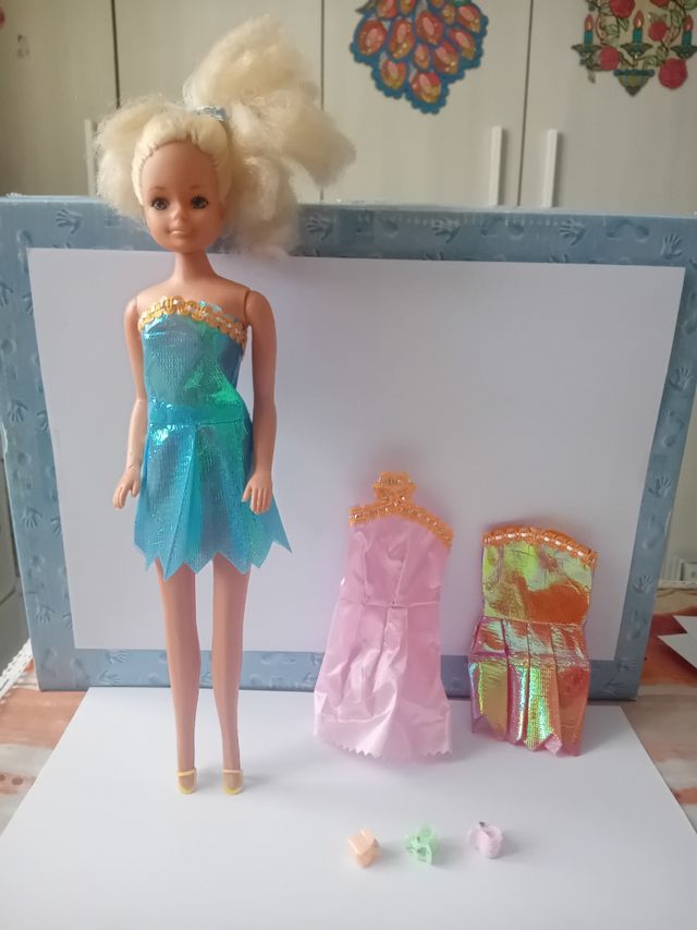Dettagli del prodottoBambola da 30cm degli anni '90 con diversi accessori inclusi. Un set completo per il gioco.