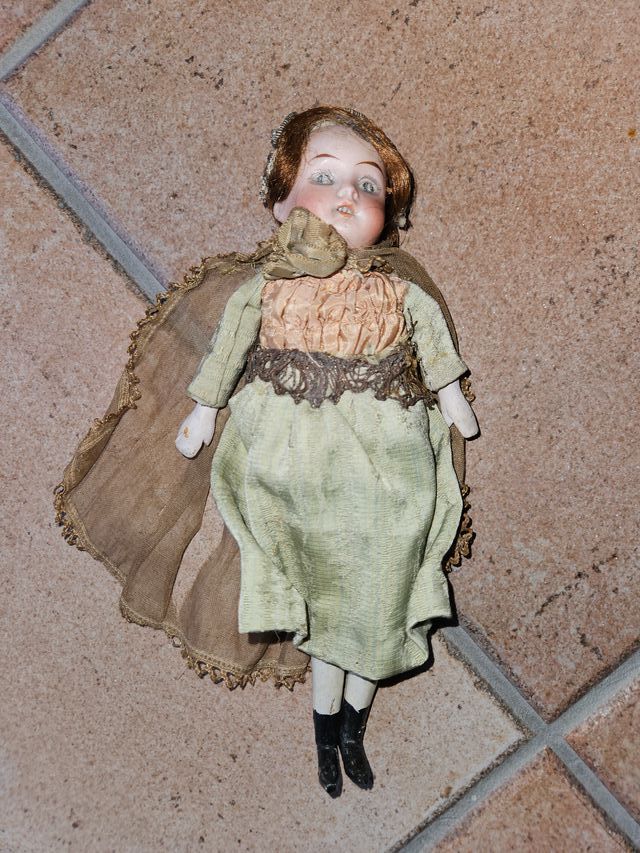 Bambola antica in ottimo stato. Misure 41 cm (altezza) x 20 cm (larghezza). Il corpo è di cartapesta, mentre braccia, gambe e testa sono in celluloide
