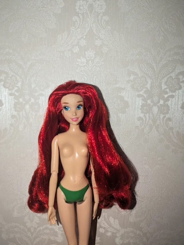 Bambola Barbie con lunghi capelli rossi e costume da bagno verde. - Capelli rossi lucidi. - Costume da bagno verde. - Articolazioni. - Viso dettagliato.
