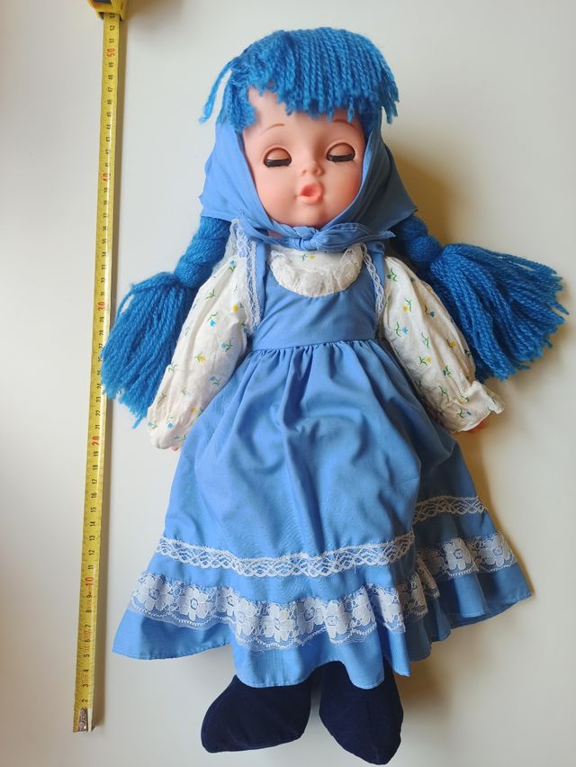 Bambola cm 50, trecce di lana, gli occhi si aprono e si chiudono. Conservata benissimo, come nuova.