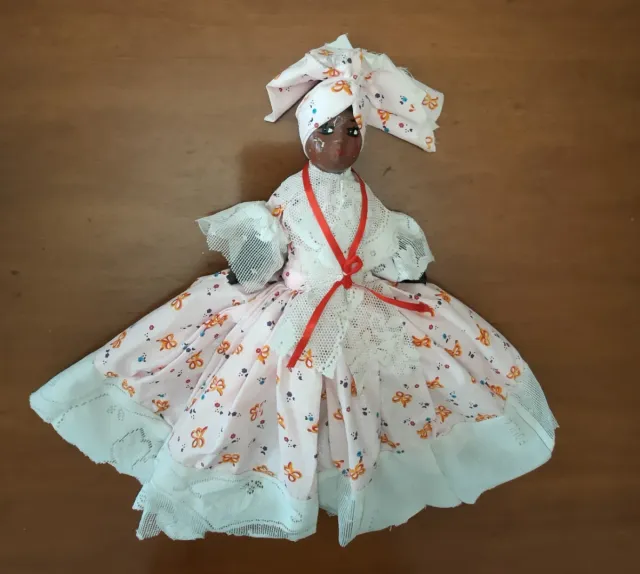Bambola Haiti Vintage Tessuto Testa Argilla