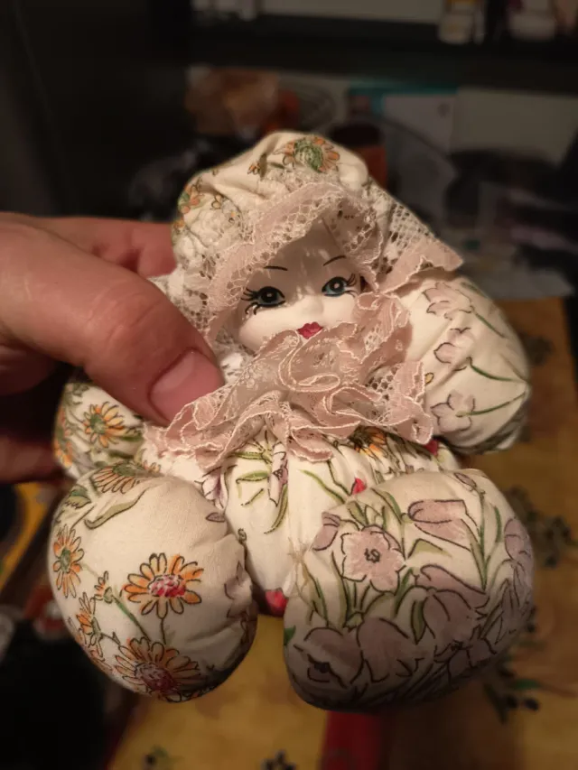Dettagli del prodottoDeliziosa bambola in stoffa, perfetta per collezionisti o come elemento decorativo.