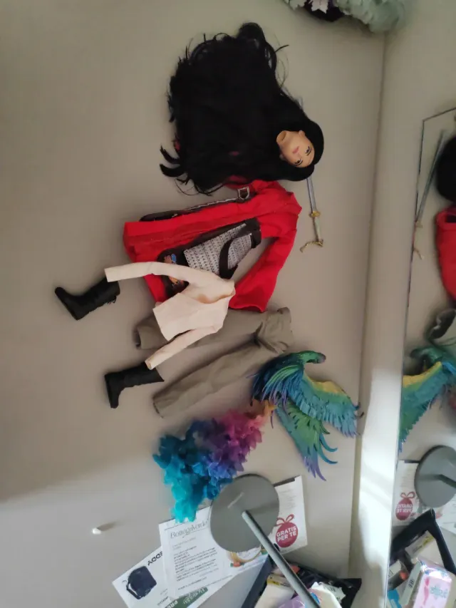 C'è tutto quello che vedere in foto, tranne il corpo. Come si vede la camicia è un po' macchiata purtoppo il kimono rosso si è un po' scolorito.