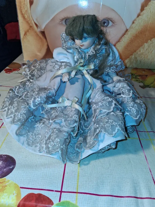 Dettagli del prodottoDeliziosa bambola in porcellana con un abito dettagliato.