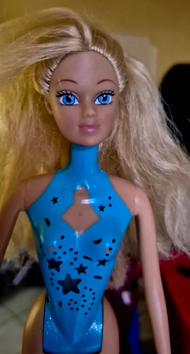 Immergendola nell'acqua si accendono le stelle del body.Mancano coda e scarpe.