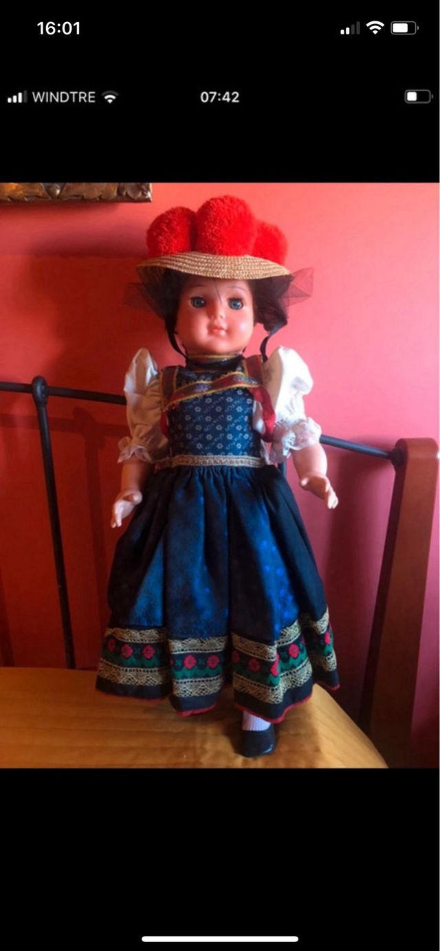 Grande bambola vintage alta circa 55, 60 cm con costume tipico conservato ottimamente Oltre quarant’anni di conservazione