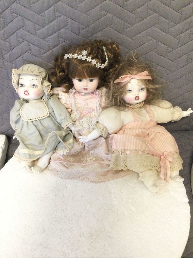 Bambole Antiche in Porcellana da Collezione!!! Set di 3 BAMBOLINE in Porcellana 1. 24x16 cm 2. 28x18 cm 3. 34x20 cm