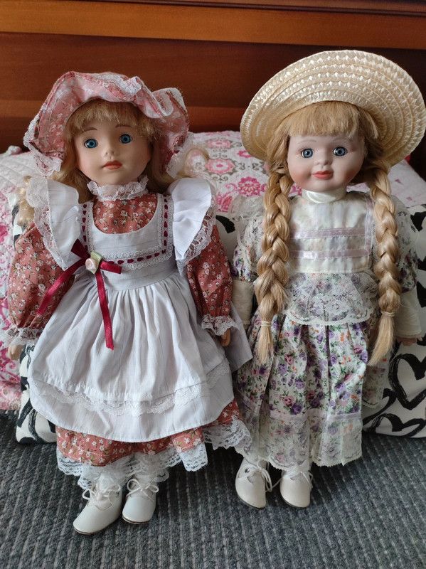 Due bambole di porcellana edizione The Classique Collection risalenti al 1988, senza scatola originale. Dimensioni: 40 cm.