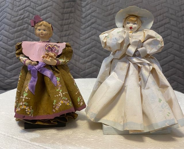 Set di due bambole in CARTAPESTA, ben definite nei particolari 1- bambola verde 14x10 cm 2- bambola bianca 15x11 cm