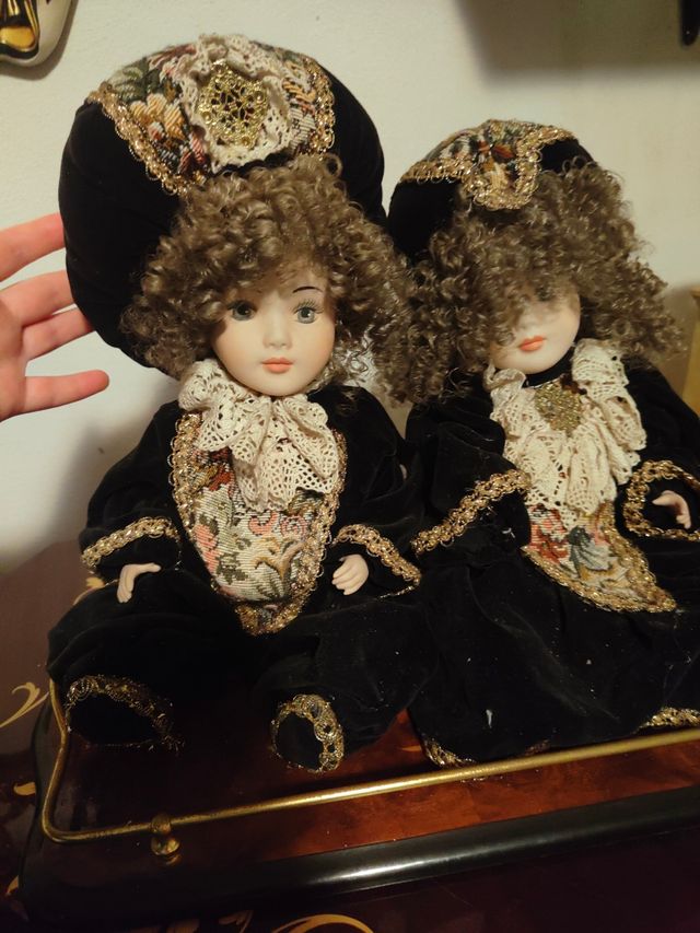 Dettagli del prodottole bambole sono completamente in porcellana, torso, braccia e gambe, teste. un ragazzo e una ragazza, i loro vestiti e cappelli non sono stati tolti. Il braccio del ragazzo è leggermente ammaccato da qualche parte nel mezzo, non potevo vederlo, ma ho sentito un piccolo pezzo di porcellana sotto la manica. in generale, le condizioni sono eccellenti, volti molto belli. il prezzo è per entrambi