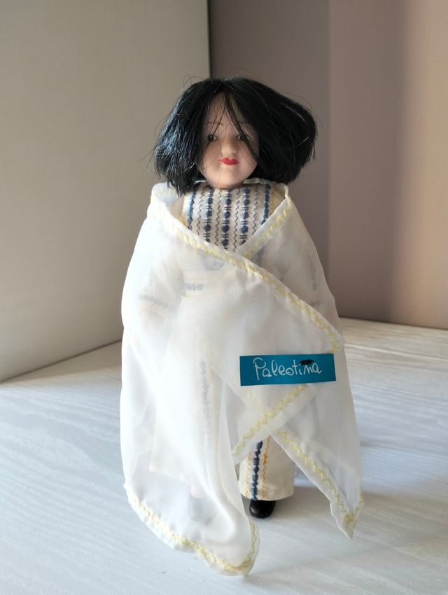 Graziosa bambolina da collezione in ceramica con il costume tipico palestinese. Alta 20 cm, imballata con estrema cura, sprovvista di piedistallo.