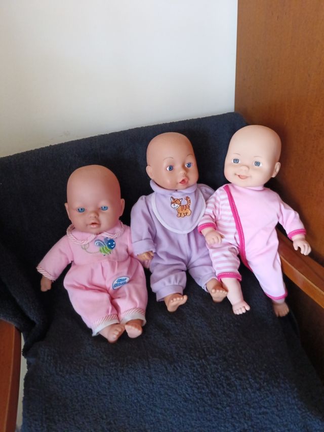 Tre bellissime bambole,circa 30 cm, corpo morbido,lavate e sanificate