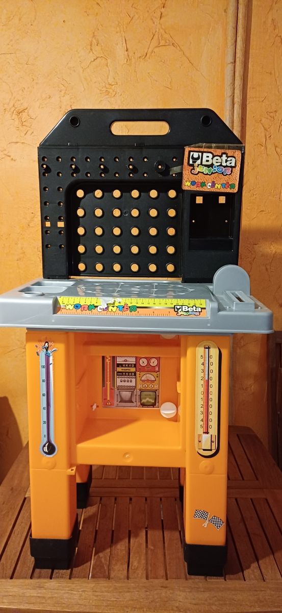 Dettagli del prodottoBanco da lavoro giocattolo Beta Junior completo di kit utensili/attrezzi. In buono stato. Le dimensioni indicate sono quelle dell'imballodi spedizione Misure del prodotto