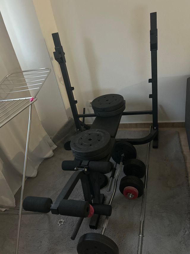 Dettagli del prodottoAttrezzatura da palestra completa per allenarsi a casa Include panca e manubri.