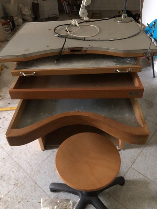 Dettagli del prodottoBanco da lavoro per orafo, usato ma in buone condizioni. Ideale per chi lavora con metalli preziosi.
