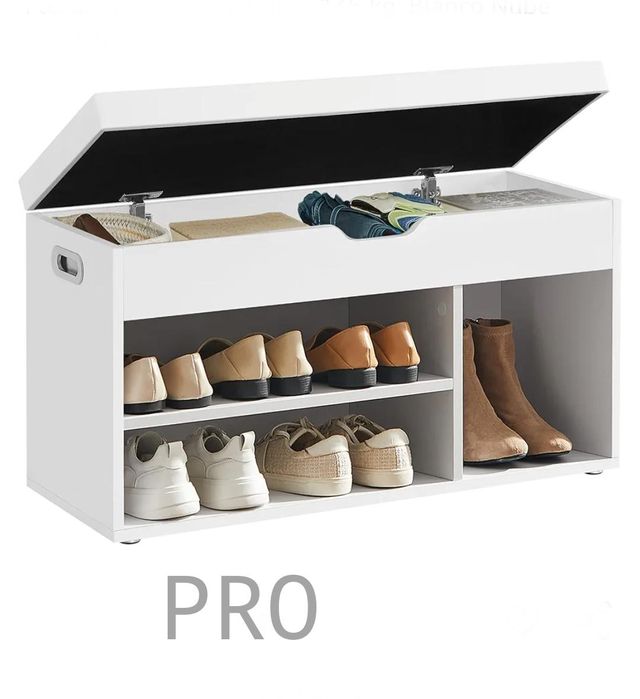 Banco con cuscino e spazio di archiviazione, 3 scomparti, vano nascosto, scaffali, soggiorno, corridoio, camera da letto, capacità di carico 136 kg, bianco nuvola LHS30W