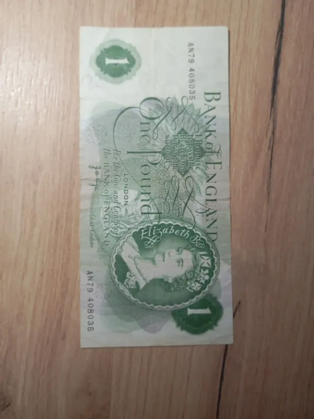 Banconota da 1 sterlina emessa dalla Bank of England. - Serie AN79 408035. - Ritratto di Elisabetta II. - Valore One Pound stampato.