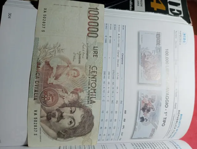 Dettagli del prodottoBanconota da 100.000 Lire della Repubblica Italiana, Il Caravaggio in conservazione BB+ vedi foto e catalogo Gigante.
