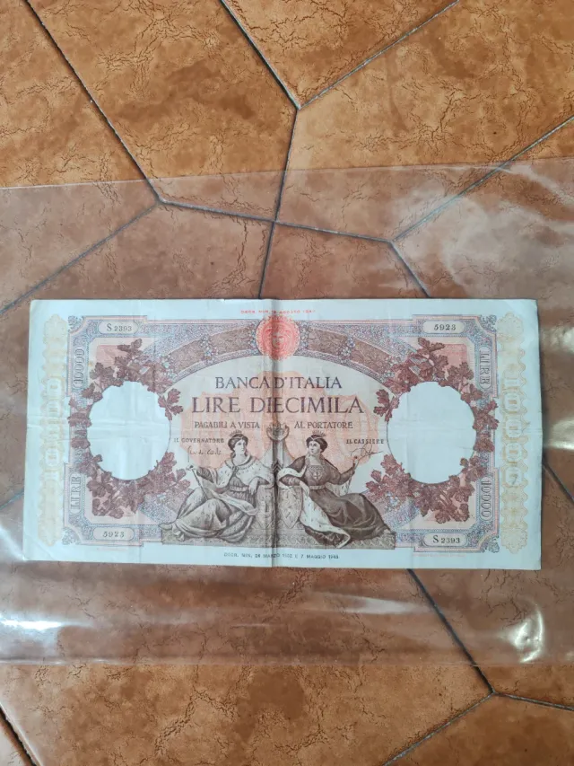 Dettagli del prodottoBanconota da 10.000 Lire emessa dalla Banca d'Italia nel 1948. Rappresenta le Repubbliche Marinare.