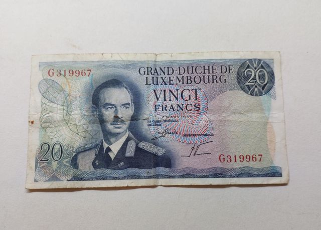 Dettagli del prodottoBanconota da 20 Franchi del Granducato di Lussemburgo, datata 7 marzo 1966.Banconota circolata ed in condizioni buone
