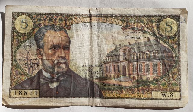 Banconota da 5 Franchi della Francia anno 1966 "Louis Pasteur" Banque de France.