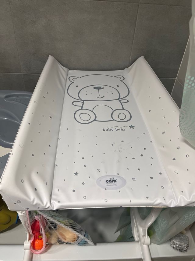 Dettagli del prodottoVaschetta che cambia marca Cam. Sono posizionati sopra la vasca da bagno e sono molto pratici. È in buone condizioni, ha solo le giunture leggermente arrugginite dall'uso dell'acqua.